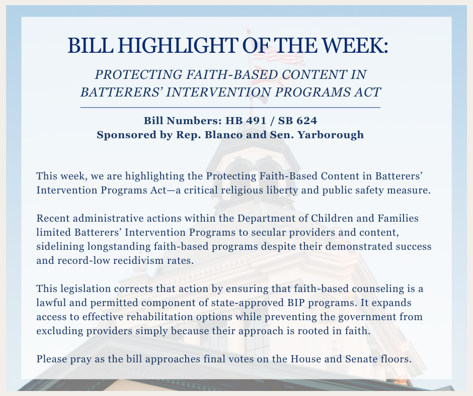 Stay connected through our email alerts and social media as our Tallahassee team continues highlighting wins for life, marriage, family, and religious liberty this session.